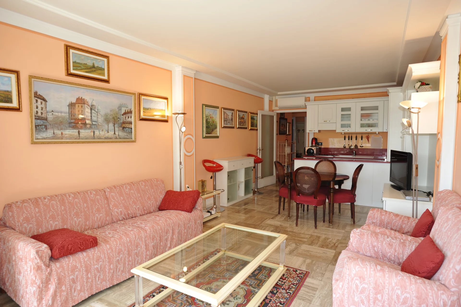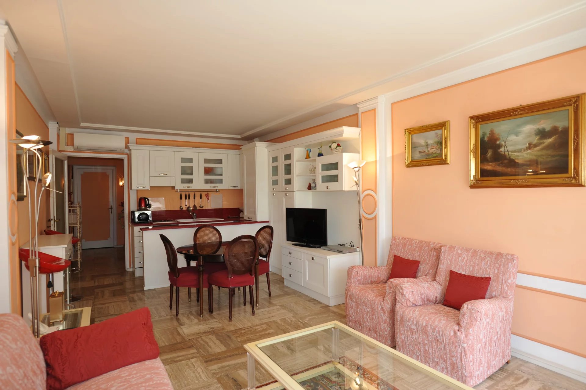 Adresse prestigieuse et iconique au cœur de la Croisette. Appartement trois pièces traversant Est/Ouest, baigné de lumière du matin au soir. Très belles perspectives sur les jardins et la mer. Volumes harmonieux à sublimer pour une rénovation sur-mesure. Potentiel remarquable. Résidence de grand standing, sécurité et élégance intemporelle. Une cave complète l’appartement. Opportunité rare à quelques pas des plages, des boutiques de luxe et du Palais des Festivals.